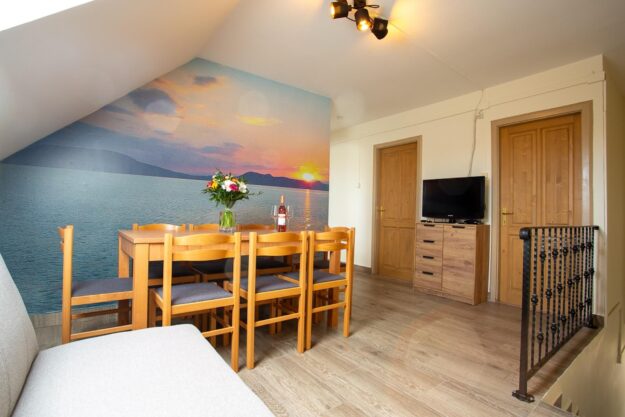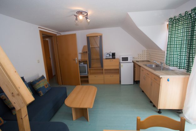Im Dachgeschoss des Gebäudes warten fünf gut ausgestattete Apartments auf Gäste, die preiswert ihren Urlaub am Wasser verbringen möchten.