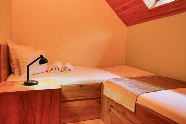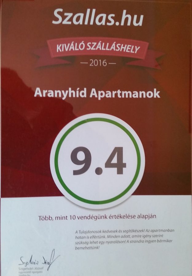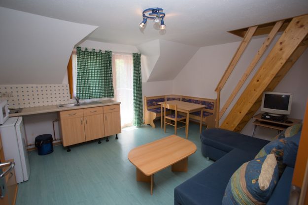 Die Wohnungen Aranyhíd und Ezüsthíd bieten Platz für eine Familie mit jeweils zwei oder drei Kindern und verfügen über ein Schlafzimmer mit Balkon, ein Kinderzimmer im Dachgeschoss, eine Küche im Wohnzimmer und einen Wasserblock. Im Wohnzimmer kann die Personenzahl durch ein großzügiges, ausziehbares Sofa erhöht werden.