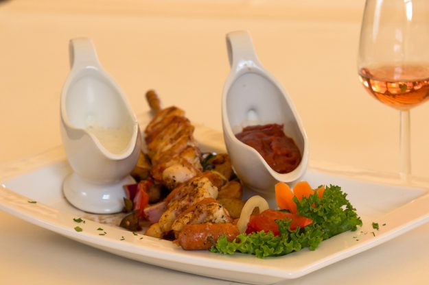 Grillezett karfiol hasábburgonyával, kétféle mártogatós