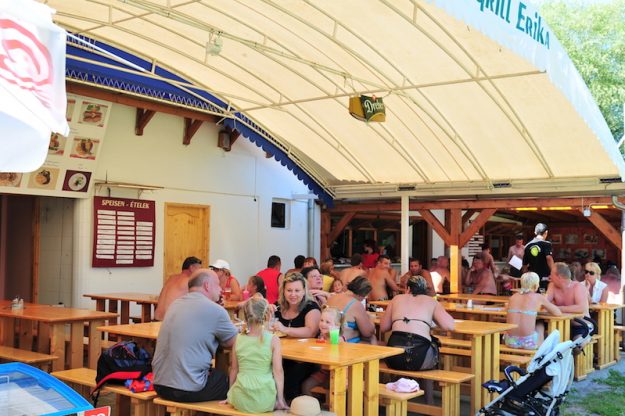 Fröccterasz- i Strandgrill Erika znajdują się przy najpiękniejszej plaży w okolicy, przy pięciogwiazdkowej, wyróżnionej Błękitną Flagą plaży centralnej Balatonmáriafürdő.